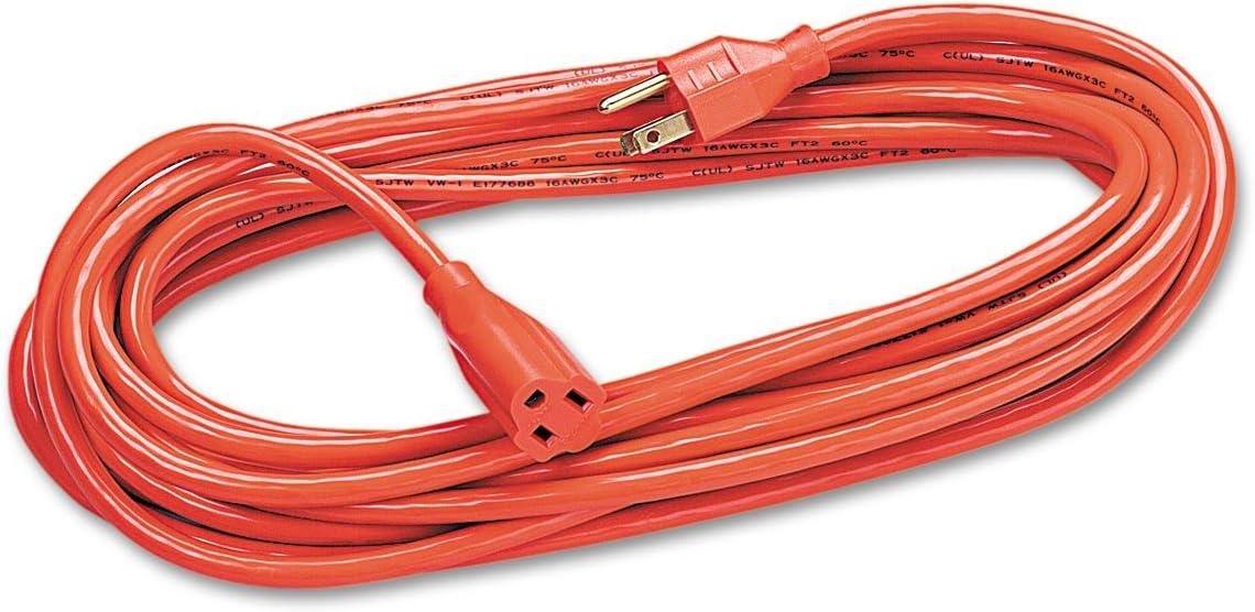 Heavy duty Fellowes 25ft Extension Cord is perfect for multiple indoor/outdoor applications. Grounded 3-prong single outlet. 13-amps, 125 volts, 16 gauge. UL and Cul approved.