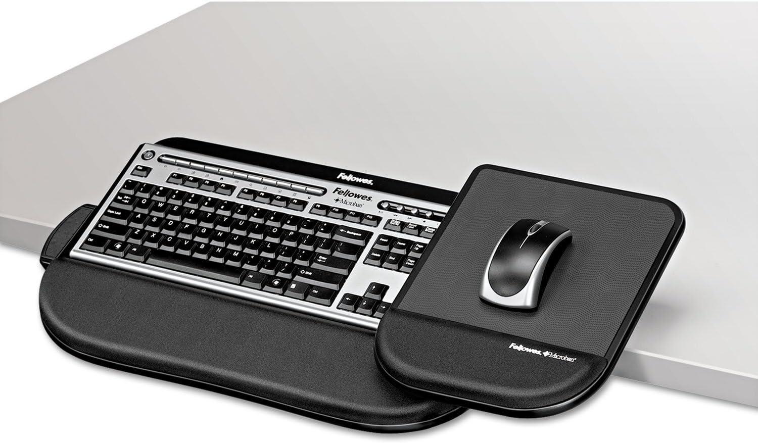 Features Comfort GlideSystem -mouse tray slides over numeric key pad Attaches to desktop edge without tools, which allows platform to tilt or slide with ease. Extended knee clearance keeps you comfortable while typing and mousing. Attaches to desktops up to 1-3/4″ thick without surface damage Single lever easily adjusts tilt (flat to 30°) and slide (4-5/8″ travel distance)Unique textured surface keeps mouse from sliding off mousing platform.(IP pending)Ultra soft memory foam wrist support with Micro-antimicrobial protection keeps product cleaner
